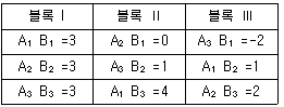 32형 요인실험을 동일한 환경에서 실험하기 곤란하여 3개의 블록으로 나누어 실험을 한 경과 다음과 같은 데이터를 얻었다. 요인 A의 제곱합(SA)은 얼마인가?