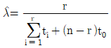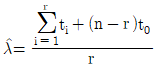 지수분포를 따르는 어떤 부품을 n개 택하여 t0지점까지 수명시험한 결과 r개의 고장시간이 t1, t2, ㆍㆍㆍ, t0에서 일어났다고 한다면, 고장률 λ의 추정식으로 맞는 것은?