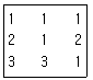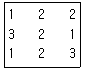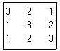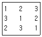 라틴방격법에 해당하는 것은? (단, 문자1, 2, 3,은 세 가지 처리의 각각을 나타낸다.)