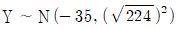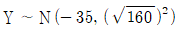 모집단으로부터 4개의 시료를 각각 뽑은 결과의 분포가 X1~N(5, 82), X2~N(25, 42) 이고, Y = 3X1 - 2X2 일 때, Y의 분포는 어떻게 되겠는가? (단, X1, X2는 서로 독립이다.)