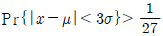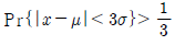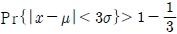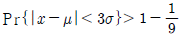 어떤 확률변수 X의 값이 그 모평균 μ로부터 3σ이내의 범위에 드는 확률을 체비쉐프(Chebyshev)의 식으로 정의할 때 맞는 것은?