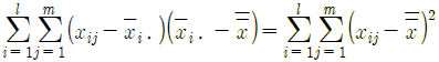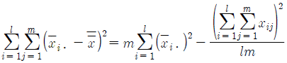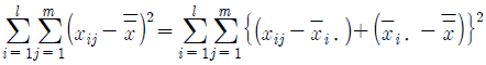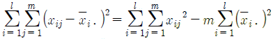 1요인실험의 분산분석을 실시하기 위해 총 제곱합(ST)을 요인 A의 제곱합(SA)과 오차 제곱합(Se)으로 분해하고자 할 때, 계산식으로 틀린 것은? (단, xij는 i번째 수준의 j번째 반복에서 측정된 특성치이며, 고려된 수준수는 l(l > 0) 그리고, 반복수 m(m > 0)이다.)