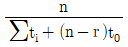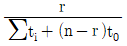 수명분포가 지수분포인 부품 n개에 대한 수명시험 중 고장난 부품은 교체하고 미리 정한 시간 t0에서 시험을 중단하였다. 시간 t0에서의 고장개수가 총 r개 일 때, 고장률의 추정 값은?