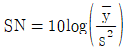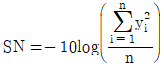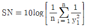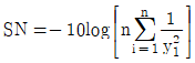 망소특성을 갖는 제품에 대한 SN비 식으로 맞는 것은? (단, yi는 품질특성의 측정값, n은 샘플의 크기,