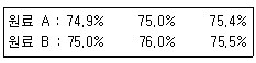 원료 A와 원료 B에서 만들어지는 제품의 순도를 측정한 결과 다음과 같다. 원료 A로부터 만들어지는 제품의 분산을 σA2이라 하고, 원료 B로부터 만들어지는 제품의 분산을 σB2 이라할 때, 유의수준 0.05로 σA2=σB2 인가를 검정하는데 필요한 F0 의 값은 약 얼마인가?
