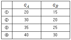 동질적 재화를 생산하는 기업 A와 B는 꾸르노(Cournot) 경쟁을 하고 있다. 이 복점시장의 역수요함수는 P=90-Q 이고, 두 기업의 비용함수는 각각 CA(qA)=10qA와 CB(qB)=20qB 이다. 꾸르노 모형의 균형에서 기업 A와 B의 생산량을 바르게 연결한 것은? (단, P는 시장가격, Q는 Q=qA+qB인 시장생산량이고, qA와 qB는 각각 기업 A와 B의 생산량이다)