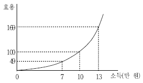 그림은 乙의 소득에 대한 효용을 나타낸 것이다. 이에 대한 설명으로 옳은 것은?