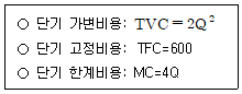 어느 기업의 비용함수가 다음과 같을 때, Q=10인 경우에 대한 설명으로 옳지 않은 것은? (단, Q는 기업의 생산량이다.)