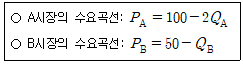 어느 독점기업은 판매 지역을 A시장과 B시장으로 구분하여 이윤을 극대화하고자 한다. 이 기업의 해당 상품에 대한 한계비용은 20이고 A시장과 B시장에 대한 수요곡선은 다음과 같을 때, A시장과 B시장에서의 판매 가격 차이는? (단, PA와 QA는 각각 A시장에서 가격과 수량이고, PB와 QB는 각각 B시장에서 가격과 수량이다)