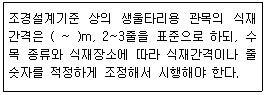 [보기]의 ( )안에 적합한 쥐똥나무 등을 이용한 생울타리용 관목의 식재간격은?