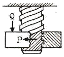 다음 [그림]과 같이 수직 하방향의 하중 Q[kg]을 받고 있는 사각나사의 너트를 그림과 같은 방향의 회전력 P[kg]을 주어 풀고자 한다. 필요한 힘 P를 구하는 식은? (단, 나사는 1줄 나사이며, 나사의 경사각은 α, 마찰각은 ρ이다.)