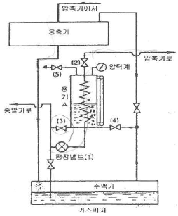 다음 [그림]과 같은 냉동기의 가스퍼저(gas purger)의 작동순서에서 가장 먼저 하는 조작은?