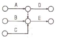 다음 그림의 AOA(Activity-on-Arc) 네트워크에서 E작업을 시작하려면 어떤 작업들이 완료되어야 하는가?