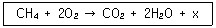 메탄가스가 완전연소할 때의 화학반응식은 다음과 같다. 2[g]의 메탄이 연소하면 111.3[kJ]의 열량이 발생할 때 다음 반응식에서 x는 약 얼마인가?