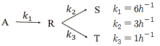 반응물 A가 아래와 같이 반응하고, 이 반응이 회분식 반응기에서 진행될 때, R 물질의 최대 농도(mol/L)는? (단, 반응기에 A 물질만 1.0 mol/L로 공급하였다.)