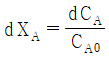 A → P 비가역 1차 반응에서 A의 전화율 관련식을 옳게 나타낸 것은?