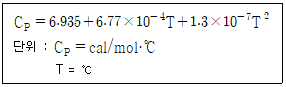 일산화탄소 분자의 온도에 대한 열용량(CP)이 아래와 같을 때, 500℃와 1000℃ 사이의 평균열용량(cal/mol·℃)은?