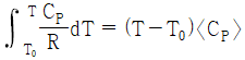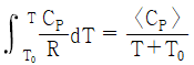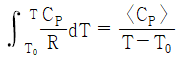 기체의 평균 열용량(<CP>)과 온도에 대한 2차 함수로 주어지는 열용량(CP)과의 관계식으로 옳은 것은? (단, 열용량은 α + βT + γT2로 주어지며, T0는 초기온도, T는 최종온도, α, β, γ는 물질의 고유상수를 의미한다.)