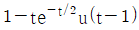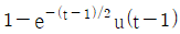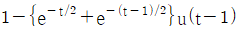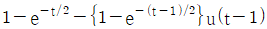 어떤 1차계의 전달함수는 1/(2s+1)로 주어진다. 크기 1, 지속시간 1인 펄스입력변수가 도입되었을 때 출력은? (단, 정상상태에서의 입력과 출력은 모두 0 이다.)
