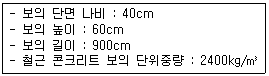 다음과 같은 조건에서 철근콘크리트 보의 중량은?