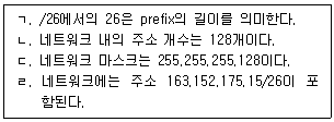 163.152.175.62/26이 클래스 없는 주소(classless address)로 주어졌다. 해당 IP 주소가 속한 네트워크에 대한 설명으로 옳은 것만을 모두 고르면?