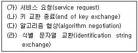 다음 SSH의 전송 계층 프로토콜 작업을 순서대로 나열한 것은?