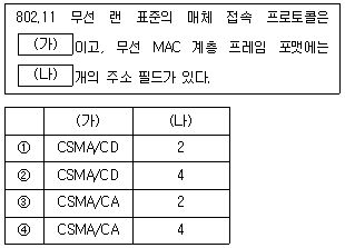 무선 랜의 MAC 프레임에 대한 다음 설명의 (가)와 (나)에 들어갈 내용을 바르게 연결한 것은?