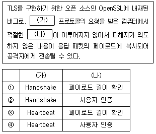 하트블리드(Heartbleed)에 대한 다음 설명의 (가)와 (나)에 들어갈 내용을 바르게 연결한 것은?