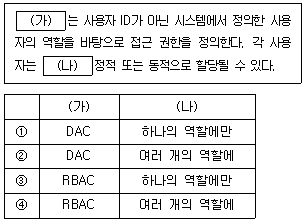 접근 제어 방식에 대한 다음 설명의 (가)와 (나)에 들어갈 내용을 바르게 연결한 것은?