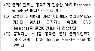 DNS 스푸핑 공격의 순서를 바르게 나열한 것은?