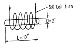 보일러 및 압력용기에 대한 자분탐상검사(ASME Sec.V Art.7)에 따라 그림과 같이 지름 2인치, 길이 10인치인 파이프를 코일법으로 자분탐상검사를 하고자 한다. 이 때 사용될 전류는 몇 [A] 인가?