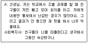 다음 사례에서 사회복지사가 사용한 면담기술로 적절한 것은?