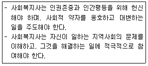 다음은 ‘한국사회복지사 윤리강령’ 중 어느 영역에 해당하는가?
