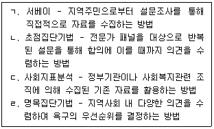 다음에서 설명하는 지역사회 욕구사정 방법에 관한 설명으로 옳은 것을 모두 고른 것은?