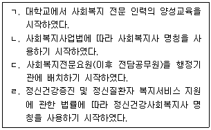한국 사회복지실천의 역사적 발달과정을 발생한 순서대로 나열한 것은?