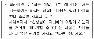 다음 예시에서 사회복지사가 활용한 실천기술은?