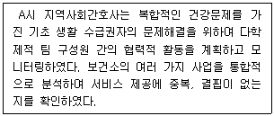 <보기>에서 설명하고 있는 지역사회간호사의 역할로 가장 옳은 것은?