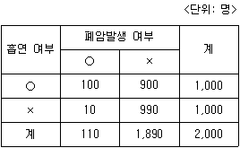 흡연과 폐암과의 인과관계를 추정하기 위해 코호트연구를 실시하여 <보기>와 같은 결과를 얻었다. 흡연으로 인한 폐암의 상대위험비(relative risk)는?