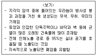 <보기>가 설명하는 실내오염 물질은?