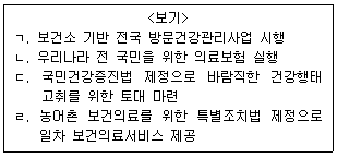<보기>의 우리나라 공공보건사업의 발전 순서를 바르게 나열한 것은?