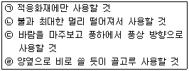 [보기]에서 소화기의 사용방법은 옳게 설명한 것을 모두 나열한 것은?