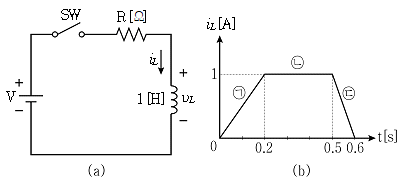 그림 (a)회로에서 스위치 SW의 개폐에 따라 코일에 흐르는 전류 iL이 그림 (b)와 같이 변화할 때 옳지 않은 것은?