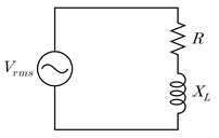 그림의 저항과 코일이 직렬로 연결된 회로에 Vrms=100[V]인 교류 전압을 인가하였다. 저항 R은 6[Ω], 유도성 리액턴스 XL이 8[Ω]일 경우 이 회로에서 소모되는 유효전력[W]은?