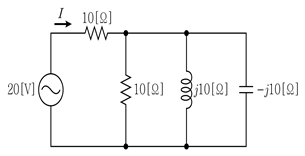 그림의 교류 전원에 연결된 회로에서 전류 I[A]는?