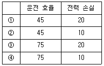 입력이 40[W]인 전원 공급기가 30[W]를 출력하고 있다. 이때 이 전원 공급기의 운전 효율[%]과 전력 손실[W]은?