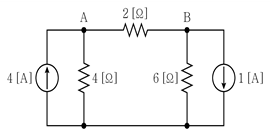 다음 회로에서 노드 A의 전압 VA[V]와 노드 B의 전압 VB[V]의 차(VA - VB)[V]는?
