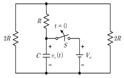 다음 회로에서 스위치 S는 t=0 일 때 개방된다. t≥0 에서 커패시터 전압 vc(t)[V]는?