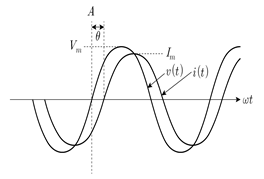 어떤 회로에서 부하의 전압 v(t)[V]와 전류 i(t)[A]의 그래프가 그림과 같을 때, 이에 대한 설명으로 옳지 않은 것은? (단, 전압과 전류는 정현파이고 주파수는 동일하다)