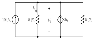 그림의 회로에서 종속전류원의 양단에 걸리는 전압 V0[V]는?