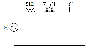다음 회로에서 v(t)=100sin(2×104t)[V]일 때, 공진되기 위한 [㎌]는?